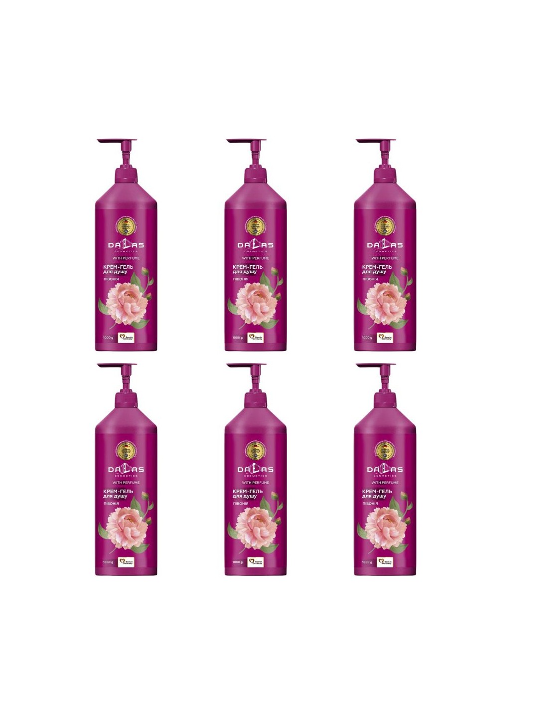DALAS Żel pod prysznic PIWONIA 1000 g, 6 sztKremowy żel pod prysznic PIWONIA od DALAS czyni z kąpieli prawdziwy rytuał myjąco - pielęgnacyjny. Fantastyczny, intensywny zapach piwonii odpręża, relaksuje i nastraja pozytywnie. Dzięki zawartości ekstraktu z piwonii żel nie tylko rozpieszcza zmysły aromatem, ale przede wszystkim odżywia i nawilża skórę, nadając jej miękkości i gładkości.Ciało po użyciu żelu DALAS staje się pachnące, jedwabiste i odpowiednio nawilżone. Sposób użycia: