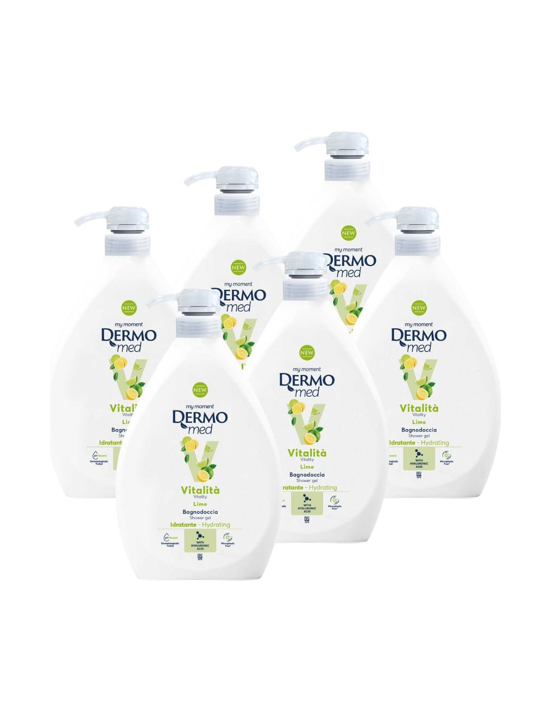 Żel pod prysznic DERMOMED LIMONKA, z pompką, 6 x 1000 ml Energetyzujący, pachnący soczystymi limonkami żel pod prysznic DERMOMED delikatnie myje, pielęgnuje i chroni nawet najdelikatniejszą skórę, czyniąc ją pachnącą, miękką i jedwabistą.Limonkowy, wyprodukowany we Włoszech żel pod prysznic DERMOMED swoim cytrusowym zapachem dodaje energii i nastraja pozytywnie, motywując do działania. Kosmetyk posiada neutralne, nie zawiera mikroplastików. Testowany dermatologicznie.Formuła żelu DERMOMED zawiera kwas hialuronowy o właściwościach zmiękczających i nawilżających skórę: