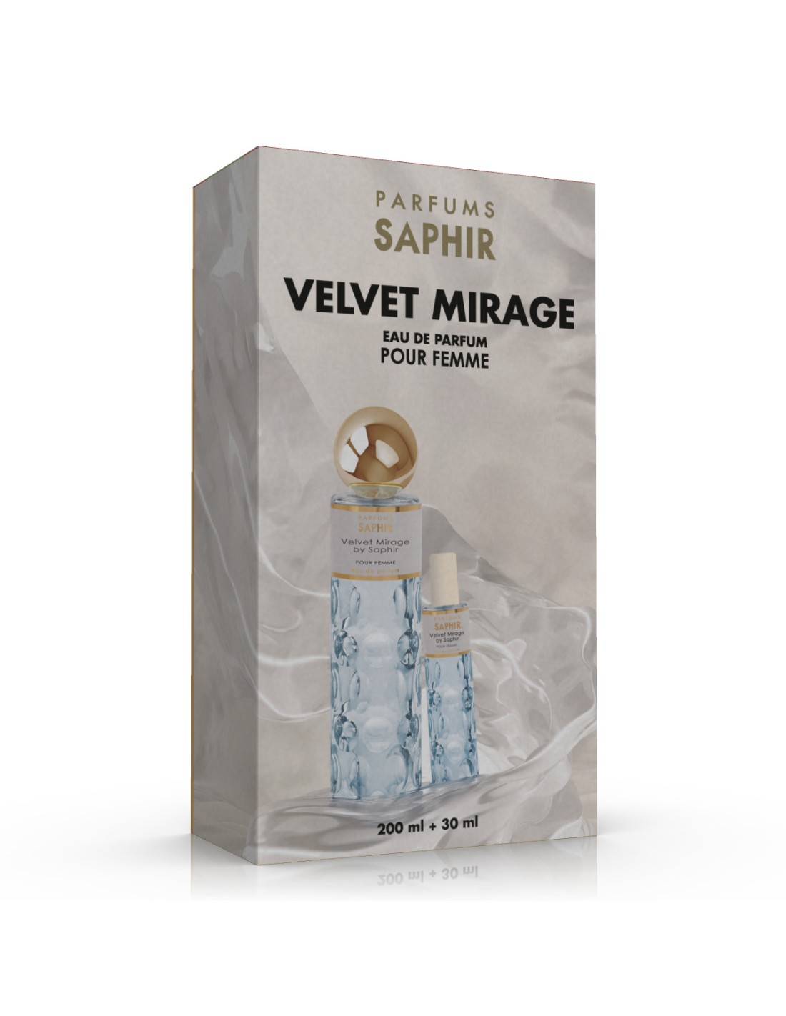 Saphir Women Velvet Mirage woda perfumowana zestaw 200 ml + 30 ml – hiszpańska elegancja w praktycznym wydaniuSaphir to hiszpańska marka perfumeryjna, która od lat tworzy zapachy inspirowane trendami światowej perfumerii. Woda perfumowana Velvet Mirage to propozycja dla kobiet, które lubią wyróżniać się subtelnością i elegancją. Zestaw zawiera duży flakon 200 ml oraz wygodną miniaturę 30 ml – idealną do torebki czy na podróż.Jak działa zapach Velvet MirageVelvet Mirage to połączenie nut kwiatowych i orientalnych, które razem tworzą kobiecą, a jednocześnie wyrazistą kompozycję.