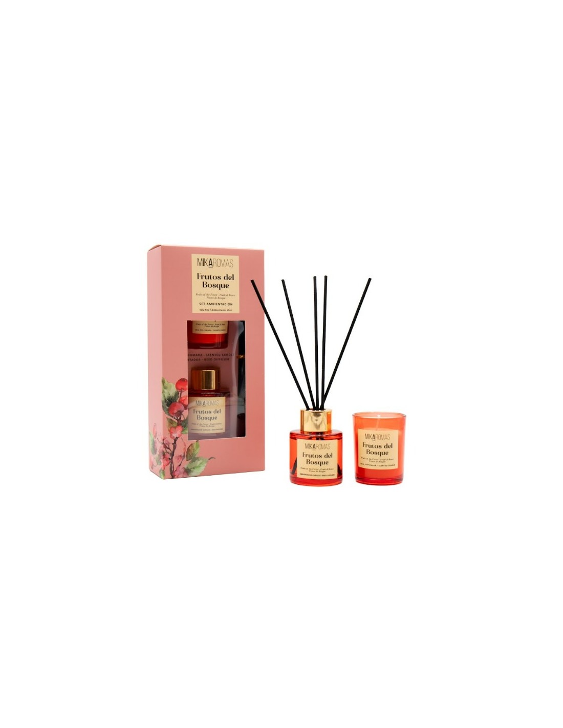 MIKAROMAS Zestaw Owoce Leśne – patyczki zapachowe 50 ml + świeca 50 g dla świeżości i energii w Twoim wnętrzu