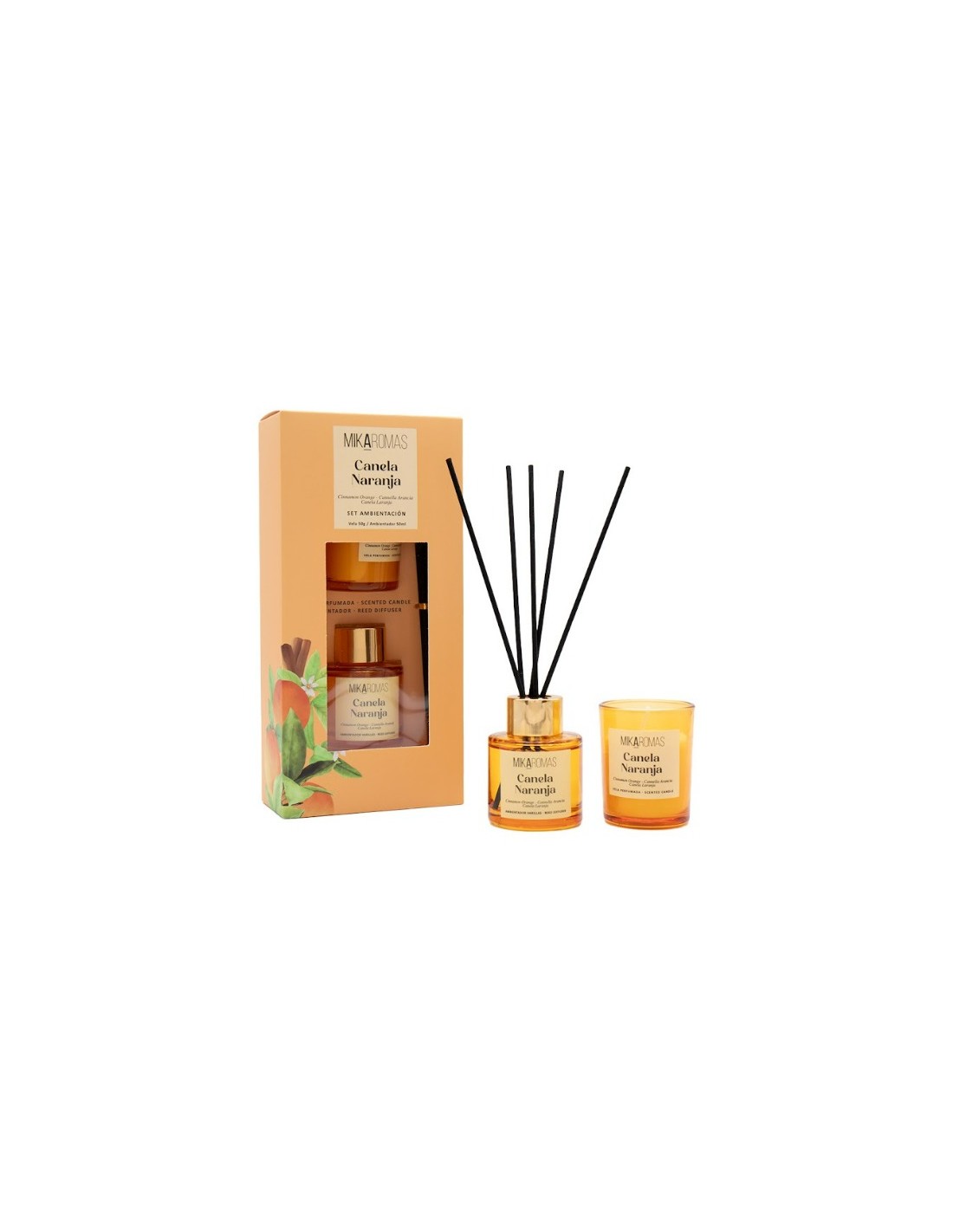 MIKAROMAS Zestaw Pomarańcza i Cynamon – patyczki zapachowe 50 ml + świeca 50 g dla przytulnego wnętrza